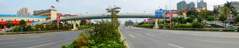该桥位于白沙友谊立交南侧,横跨在白沙大道,人行天桥工程主体:长75.5米,宽5米,面积377.5平方;步梯:总长111.2米,宽3米,面积333.6平方;主体及梯道均为钢箱梁结构,工程总造价为535万,项目施工单位为广西房都建设工程有限公司,监理单位为广西建科工程监理有限责任公司,2015年10月底进场施工,于2015年12月底已经全部完工并初步验收工作。