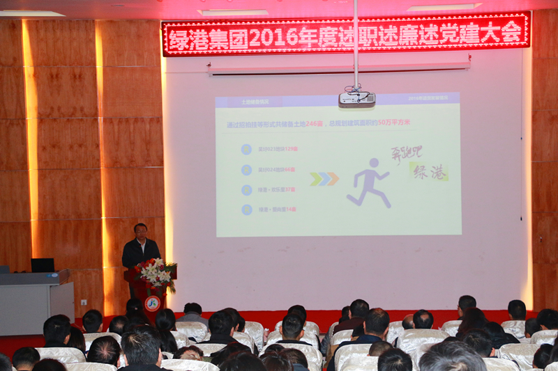 2017年1月14日,绿港集团召开2016年度述职述廉述党建工作会议,集团全体领导班子、集团总部全体员工及子公司中层干部、职工代表共150余人参加了大会,经开区纪工委派驻国有公司纪检组组长李云岳,党群工作局组织科科长向国泽出席会议。