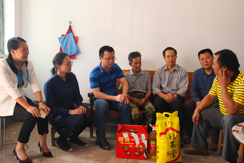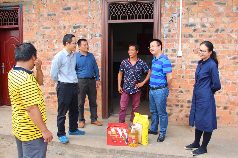 座谈会结束后,在那楼镇陆文威书记的陪同下,龚国强董事长一行先后来到贫困户卢创兴和梁荫坎家里开展入户慰问工作。在卢创兴家里,龚董事长紧紧握住卢创兴老人的手,详细地了解卢创兴家庭情况,当了解到卢创兴家通过转移劳动力的方式,增加创收途径,实现脱贫的时候,龚董事长频频点头。在贫困户梁荫坎家里,董事长了解到他通过发展种养,凭着农村人朴实无华的特质,种养产品不仅获得丰收且供不应求的时候,董事长给他竖起了大拇指,鼓励他继续扩大生产规模,早日实现小康生活。调研组一行还向两户贫苦户送上了慰问品。
