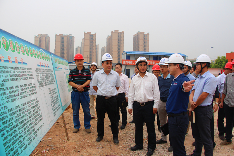 在那洪沟街头绿地及生态水处理配套工程项目现场,何尚汉书记认真听取了绿港集团董事长、总经理龚国强作的项目进展情况汇报,并对绿港集团所做的工作和取得成绩表示充分肯定,勉励建设者们继续发扬绿港集团铁军的精神,克难攻坚,加快推进项目建设,展现“绿港铁军”速度。