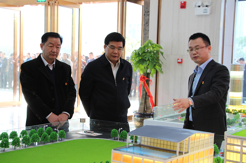 经开区党工委书记、管委会主任何尚汉,经开区党工委副书记覃传财,绿港集团党委书记、董事长、总经理龚国强,副总经理陆羿冰一起为绿港集团新办公大楼揭牌,共同见证属于绿港集团的重要历史时刻。随后,何尚汉书记一行参观了绿港集团新办公大楼1楼项目展示中心,详细了解绿港·国际中心、绿港·阳光里、绿港·欢乐里、绿港·云海湾等项目进展情况。随后,何书记一行来到8楼,参观了绿港集团党建文化长廊、党建活动室,并对绿港集团的党建工作表示肯定。