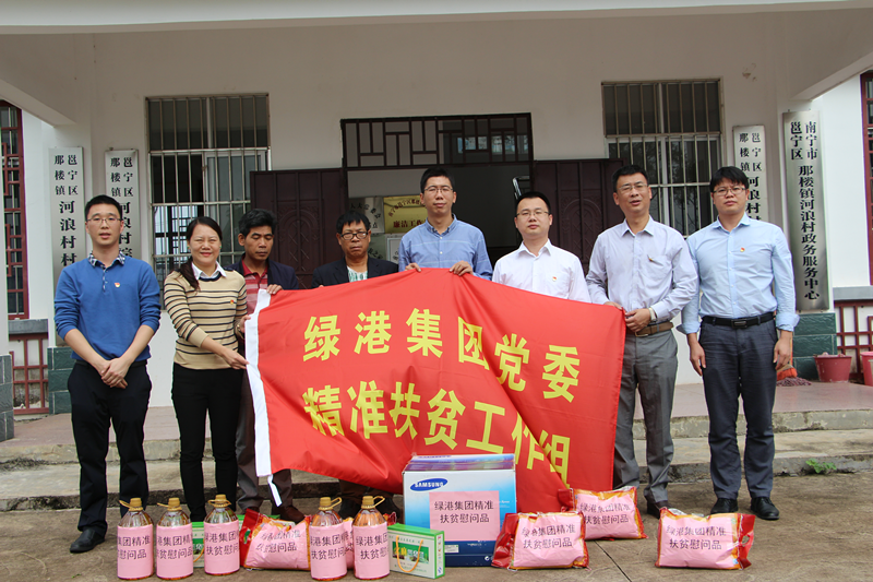 10月25日,绿港集团党委书记、董事长、总经理龚国强带队到邕宁区那楼镇河浪村开展精准扶贫工作。集团副总经理傅杰锋,副总经理邓继慧,副总经理、工会主席黄丽琴,及集团相关部门人员参加了此次慰问活动。