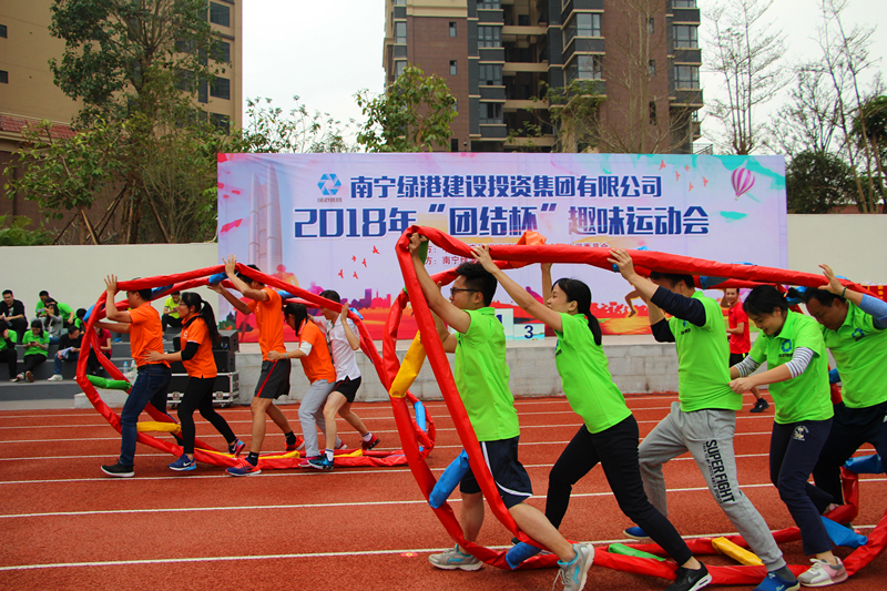 当天上午,伴随着《运动员进行曲》,来自绿港集团总部及下属子公司的5支代表队共165名运动员们迈着矫健的步伐列队入场。绿港集团党委书记、董事长、总经理龚国强致开幕词,经开区党工委委员、管委会副主任廖勇作了热情洋溢的讲话并宣布运动会开幕。他表示,经开区党工委、管委会领导对今年以来绿港集团在项目建设、服务企业、招商营销、融资等方面取得的成效高度认可,尤其是瑞声项目建设、黑臭水体治理等工作更是得到了市委、市政府领导的充分肯定,希望全体绿港职工既在项目建设工地上挥洒汗水、抢抓进度,又能在运动场上绽放激情、摘金夺银。随后,运动员代表、裁判员分别宣誓。在绿港集团10名青春亮丽的“运动宝贝”激情四射的啦啦操以及万方物业公司热血沸腾的军体拳表演后,“团结杯”趣味运动会正式拉开帷幕。