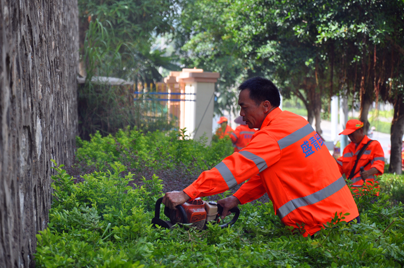 在南宁经开区的市政道路绿化、科教文卫事业项目、公共建筑等项目中,随处可以看到绿港集团下属荣鑫公司绿化工人忙碌的身影,他们身着橘红色的工作服,头戴安全帽,用勤劳和智慧筑梦绿城南宁,深耕于南宁经开区的城市园林绿化领域,争当南宁经开区绿色建设“排头兵”。