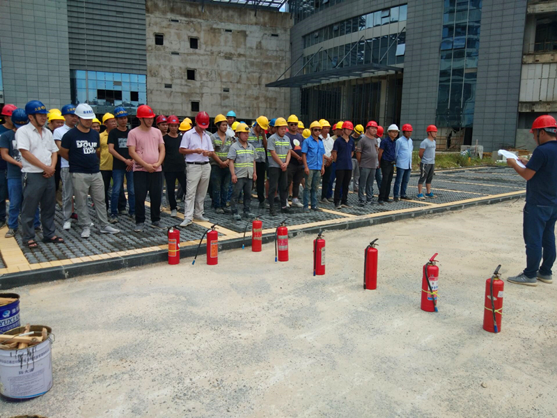 绿港国际中心项目:积极展开安全生产工作布置,并进行了安全教育及消防灭火演练。演练现场,专业人员详细讲解安全知识,工人们轮流试用消防器材,直至全体人员掌握了消防器材的基本使用方法,以及了解发生火灾事故如何扑救和如何正确逃生技巧。
