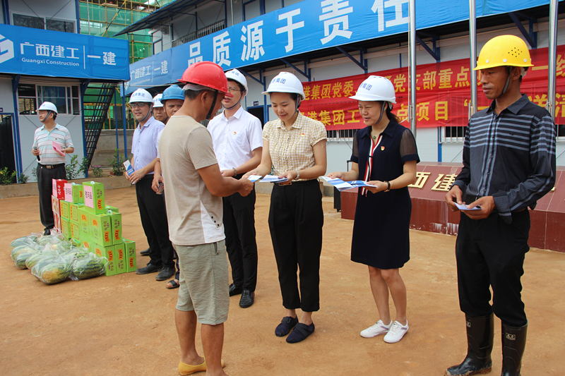骄阳似火,酷暑难当。随着聒噪的蝉鸣,又迎来了今年的高温季节,为做好防暑降温工作,保障重点工程和重点项目一线员工和项目建设者的健康权益,绿港集团党委和工会在7月4日分别来到绿港·云海湾、吴圩3号路、金凯工业园等9个重点项目和重点工程现场,为奋战在一线的职工和项目建设者们送去了丝丝凉意,献上了一份诚挚的关怀。