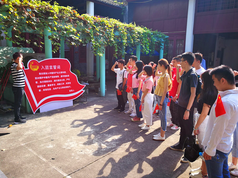 南宁快速便捷的地铁,很快就把大家安全送到了今天活动的第一站--共青团南宁地委旧址,它位于南宁市北宁街47号,被列为自治区重点文物保护单位。1926年11月7日,共青团南宁地委就在这里成立,指挥领导南宁青年投入如火如荼的革命运动,直到几年前这里都仍然是南宁市共青团委机构所在地。今天绿港青年来到这里,瞻仰珍藏在纪念馆内的铜制团徽,重温入团誓词,感受革命年代青年团员同志的昂扬斗志,继承共青团良好的革命传统,接过时代的接力棒,奋斗新时代。