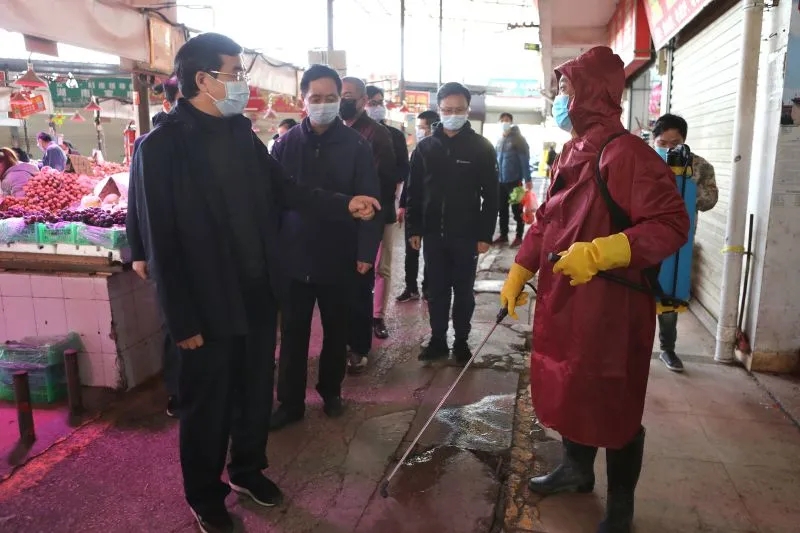 ▲何尚汉书记、主任深入辖区市场检查疫情防控工作