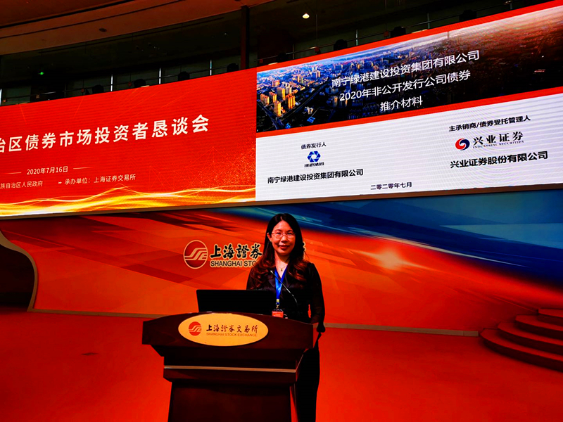 绿港集团财务总监关月娥代表南宁市债券销售路演企业介绍了南宁绿港2020年非公开发行公司债券的项目情况:该期债券的发行主体为绿港集团,发行规模不超过15亿元,期限不超过5年,目前已报上海证券交易所审核,计划在今年三季度择机发行,已受到众多机构投资者的广泛关注。
