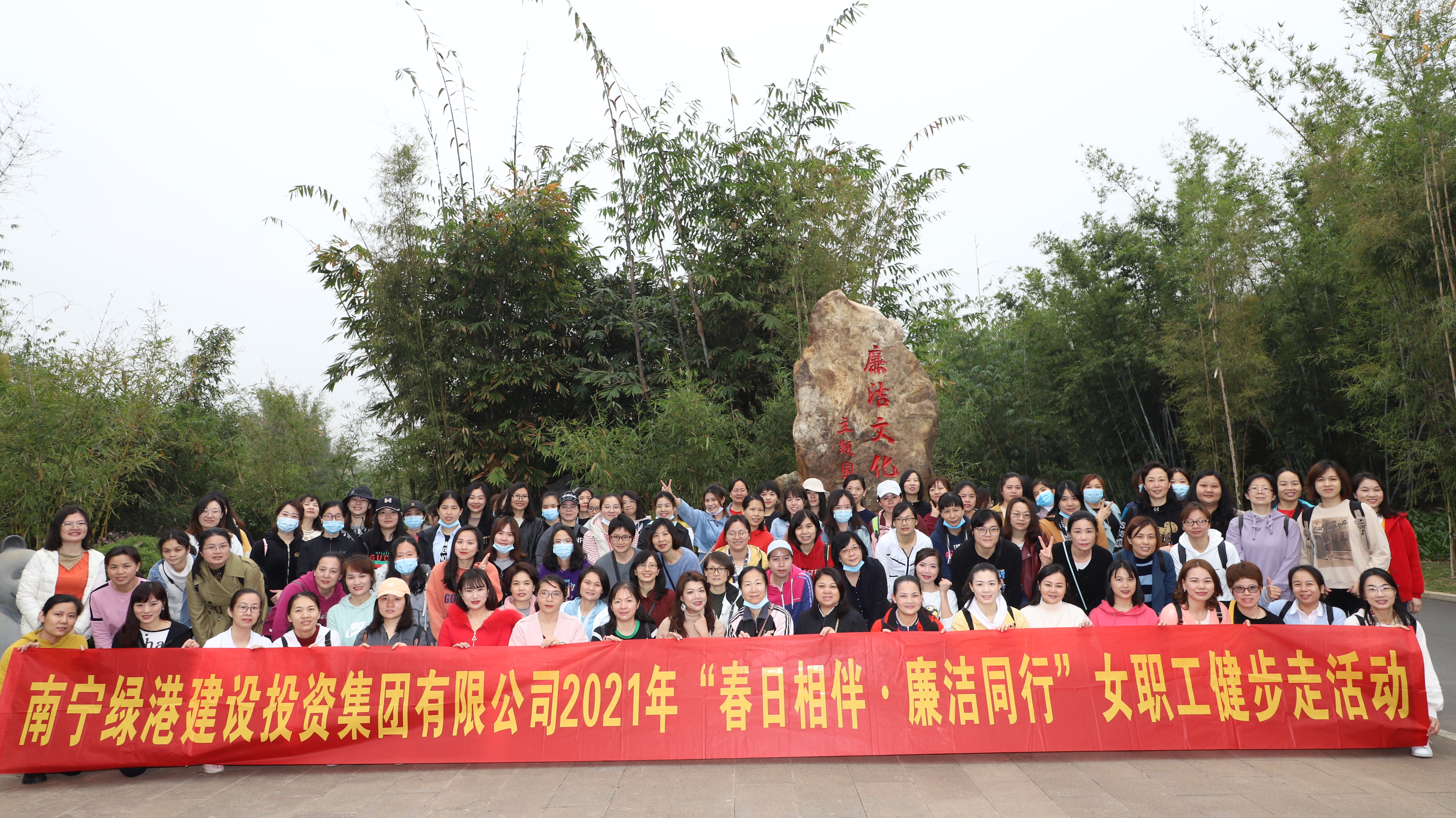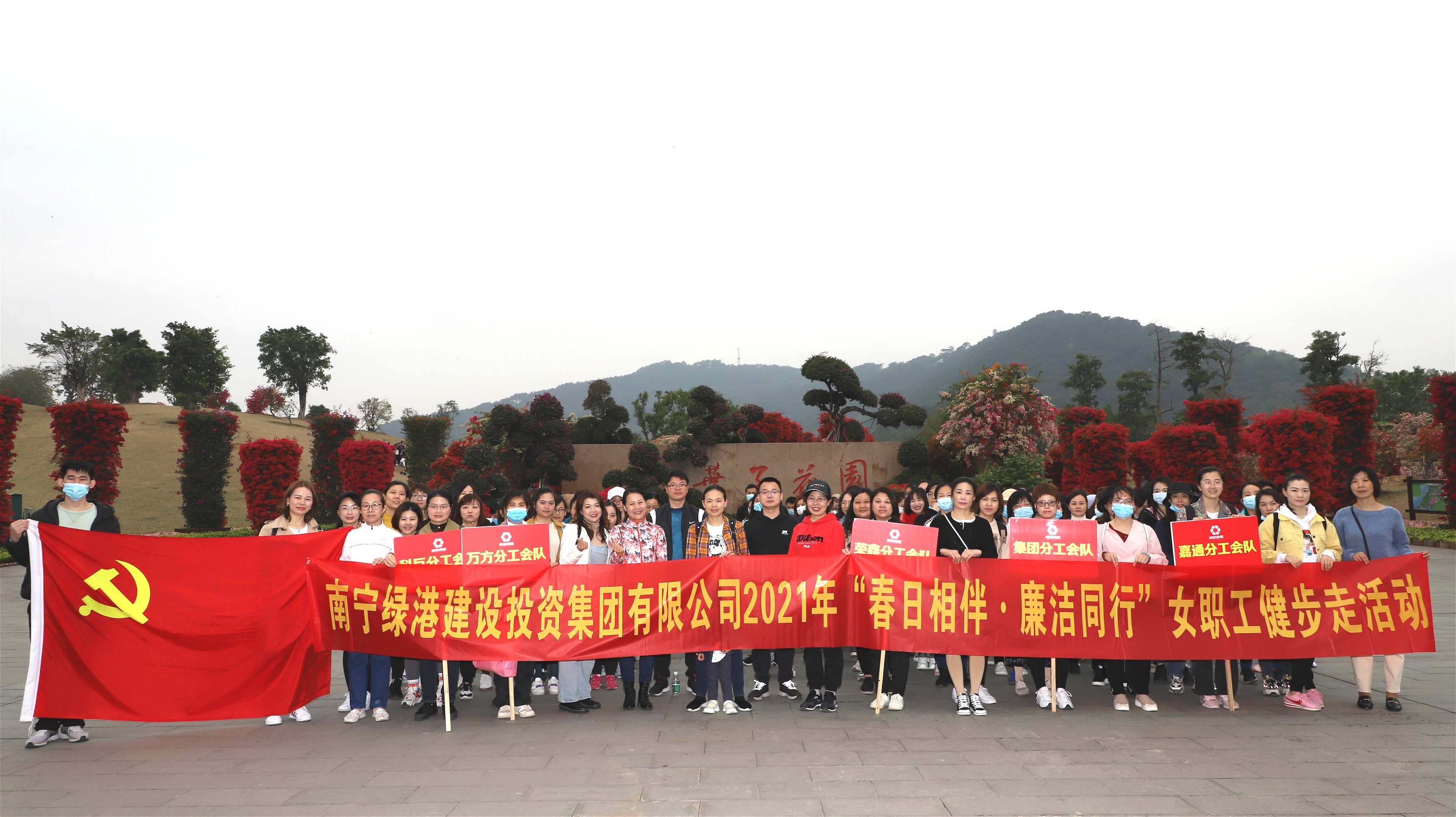阳春三月,春意盎然。为庆祝第111个“三八”国际妇女节,充分展示妇女职工积极进取、昂扬向上的巾帼风采,弘扬“绿色运动”健康理念,倡导健康文明生活方式,3月8日,绿港集团党委、绿港集团工会、绿港集团女工委在南宁青秀山共同举办“春日相伴·廉洁同行”健步走活动。集团公司党委书记、董事长龚国强,集团公司党委副书记、总经理邓继慧,集团公司党委委员、副总经理陆羿冰,集团公司党委委员、副总经理、工会主席黄丽琴,集团公司财务总监关月娥出席活动。绿港集团全体管理岗位女职工及其亲属约130人参加。