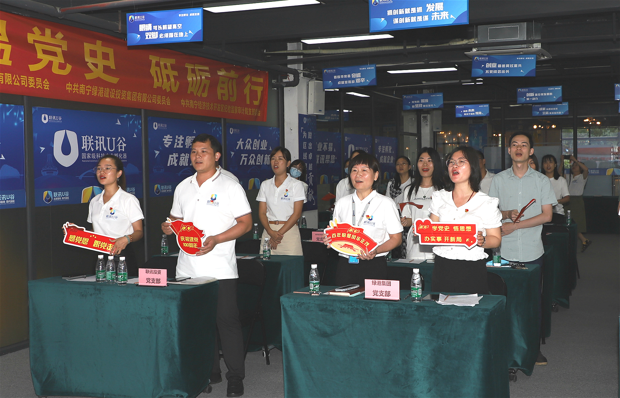 为庆祝建党100周年,继承和发扬党的优良传统和作风,扎实推进党史学习教育,推动学习教育走深走实,5月26日,绿港集团党委、广西联讯党委、南宁经开区纪检监察审计局党支部联合举办“重温党史 砥砺前行”主题党建共建活动,绿港集团、广西联讯、南宁经开区纪检监察审计局的党员代表、发展对象、入党积极分子共35人参加了活动。