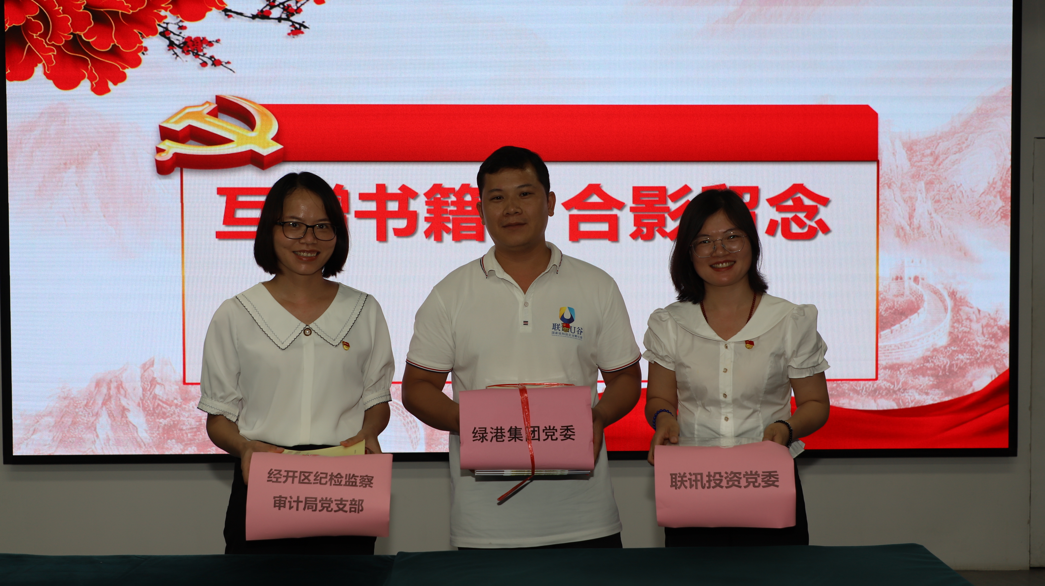 绿港集团党委与广西联讯党委、南宁经开区纪检监察审计局党支部互赠党史学习教育书籍