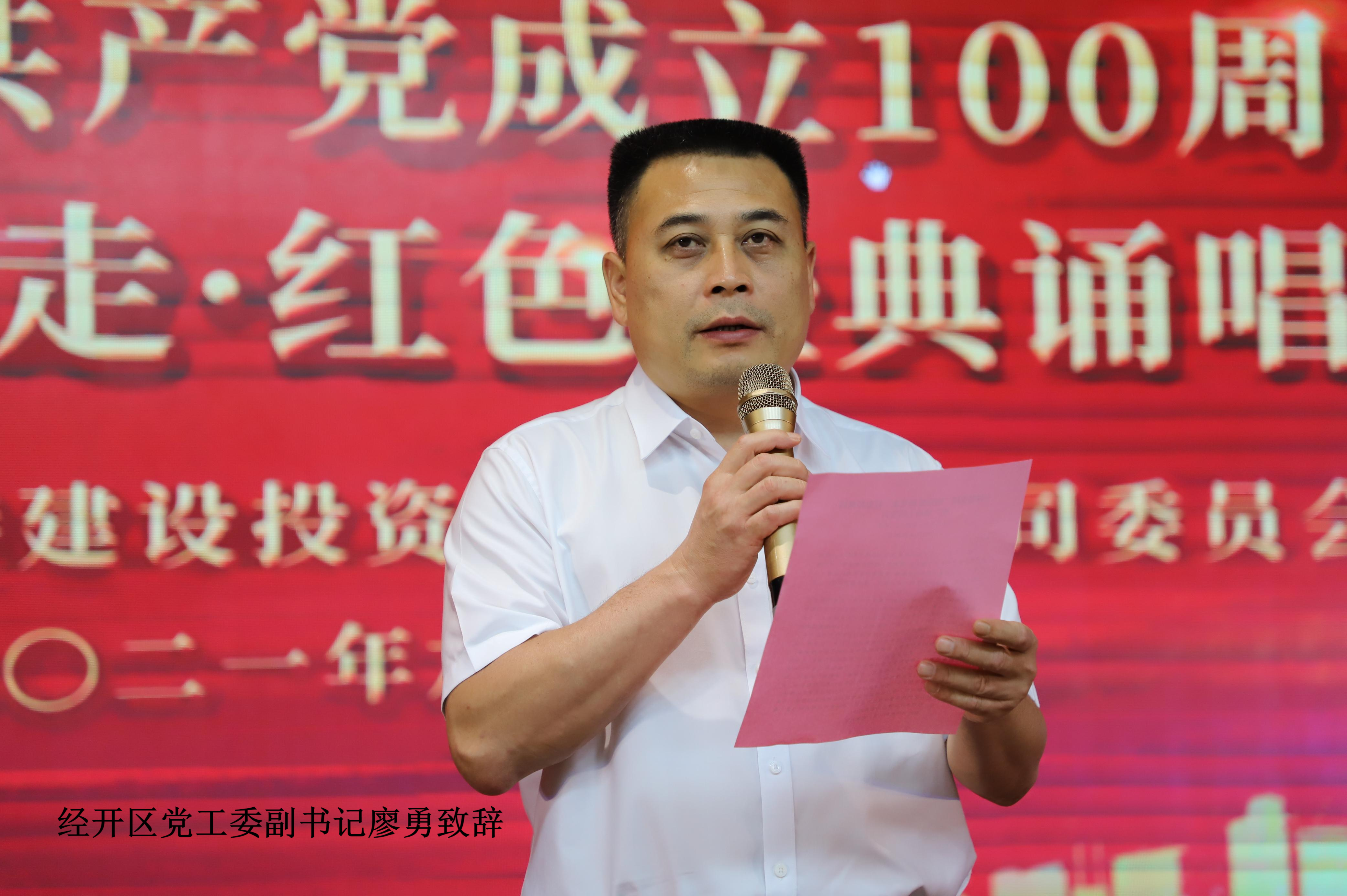 为庆祝中国共产党成立100周年,吟诵祖国日新月异的变化,奋进新时代的昂扬旋律,6月30日,绿港集团党委开展“感党恩 跟党走·红色经典诵读”比赛。经开区党工委副书记廖勇,集团班子领导及全体党员、入党积极分子共150多人参加了活动。