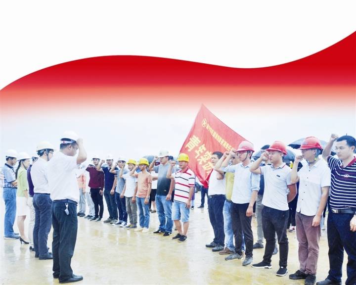 绿港集团党委在项目一线成立青年党员突击队,让党旗在一线高高飘扬