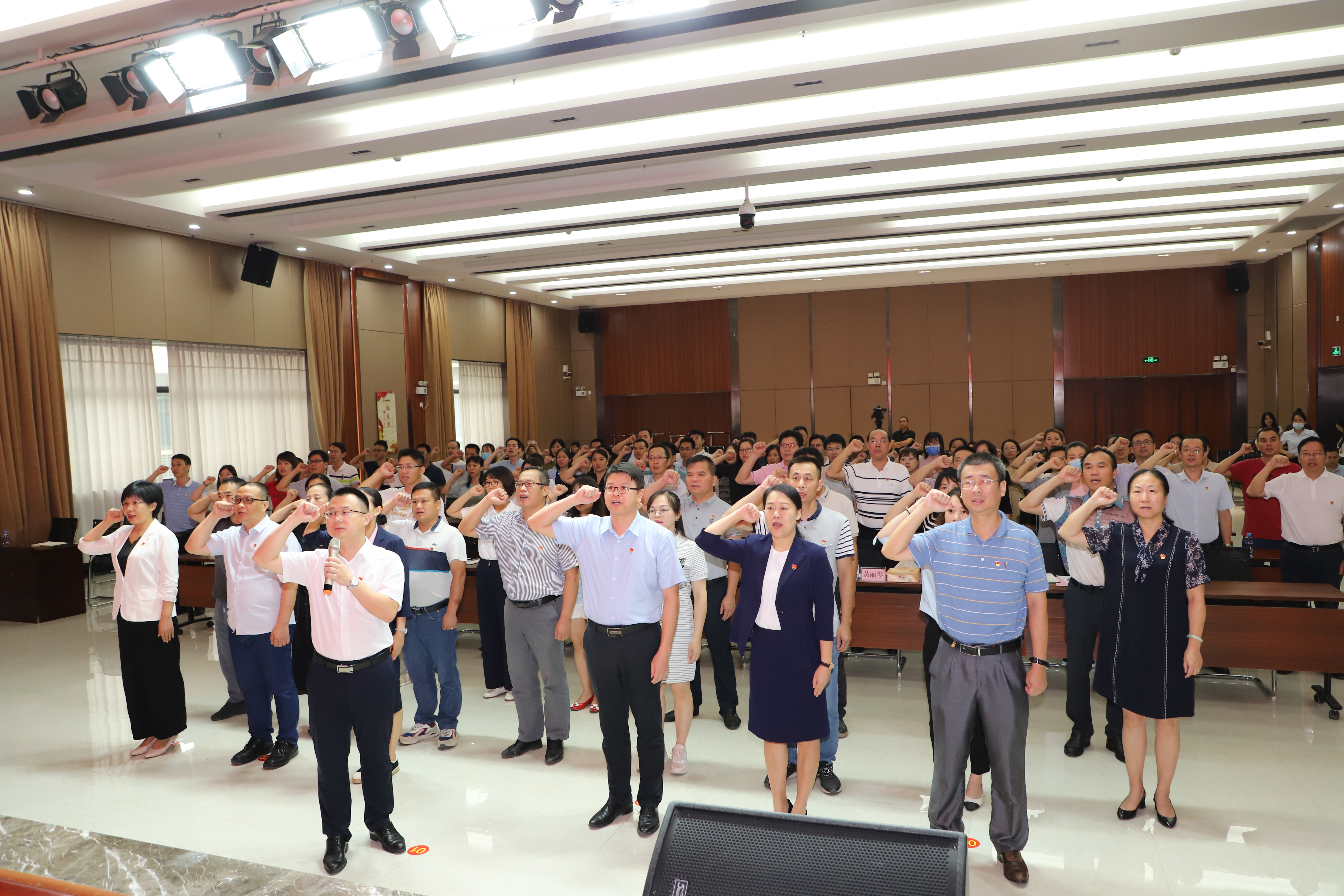 “我志愿加入中国共产党,拥护党的纲领,遵守党的章程,履行党员义务……”迎着党旗、举起右拳,在集团党委书记、董事长龚国强的带领下,绿港集团7名新入党党员庄严地宣读了入党誓词、98名老党员同志重温了入党誓词,大家在入党誓词中回顾初心,铭记宗旨,接受了一次心灵的洗礼。