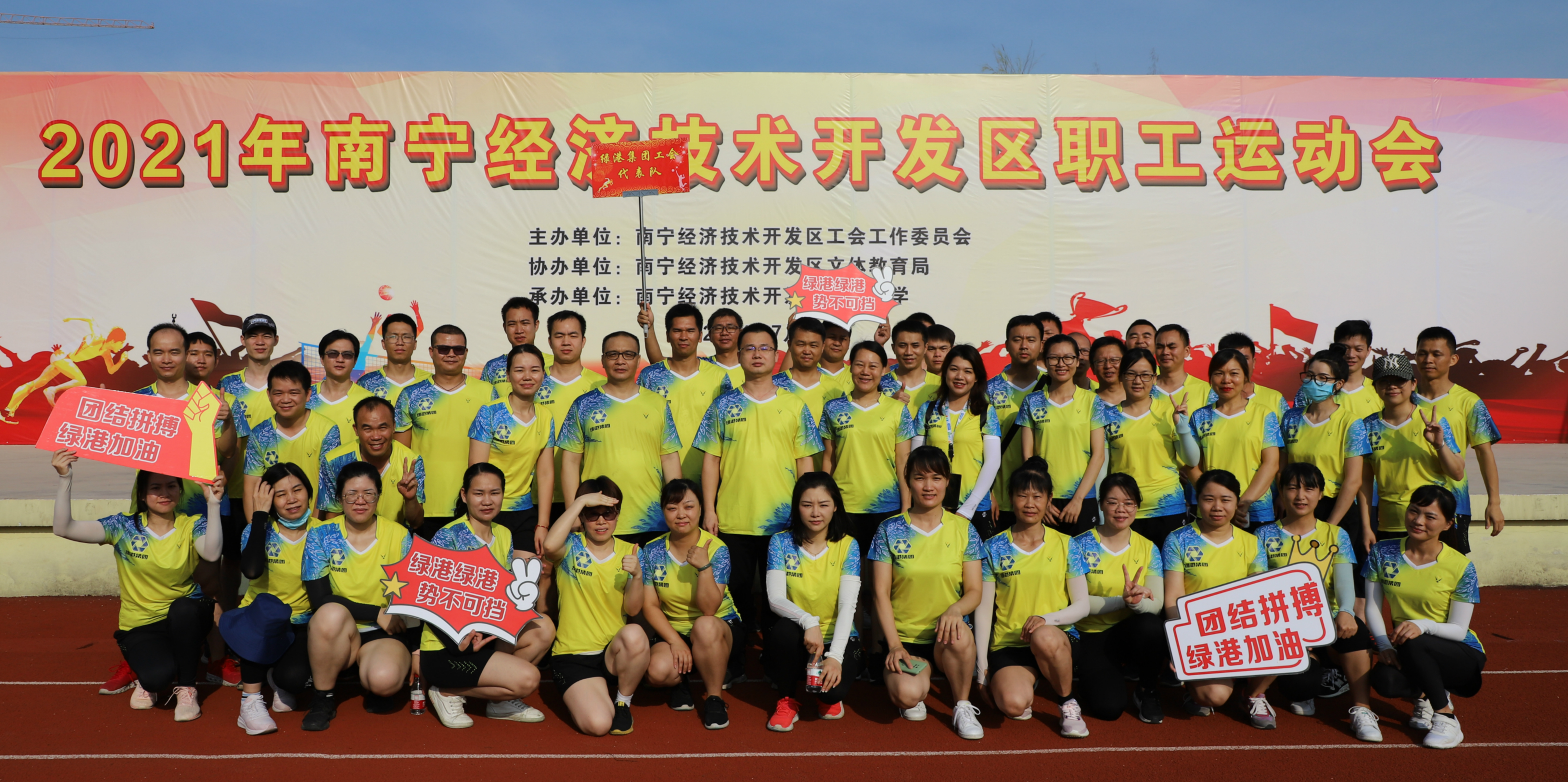 7月17日,南宁经济技术开发区2021年职工运动会在经开区第一小学举行。经开区14支职工代表队参加此次比赛,绿港集团近70名职工代表参加比赛。