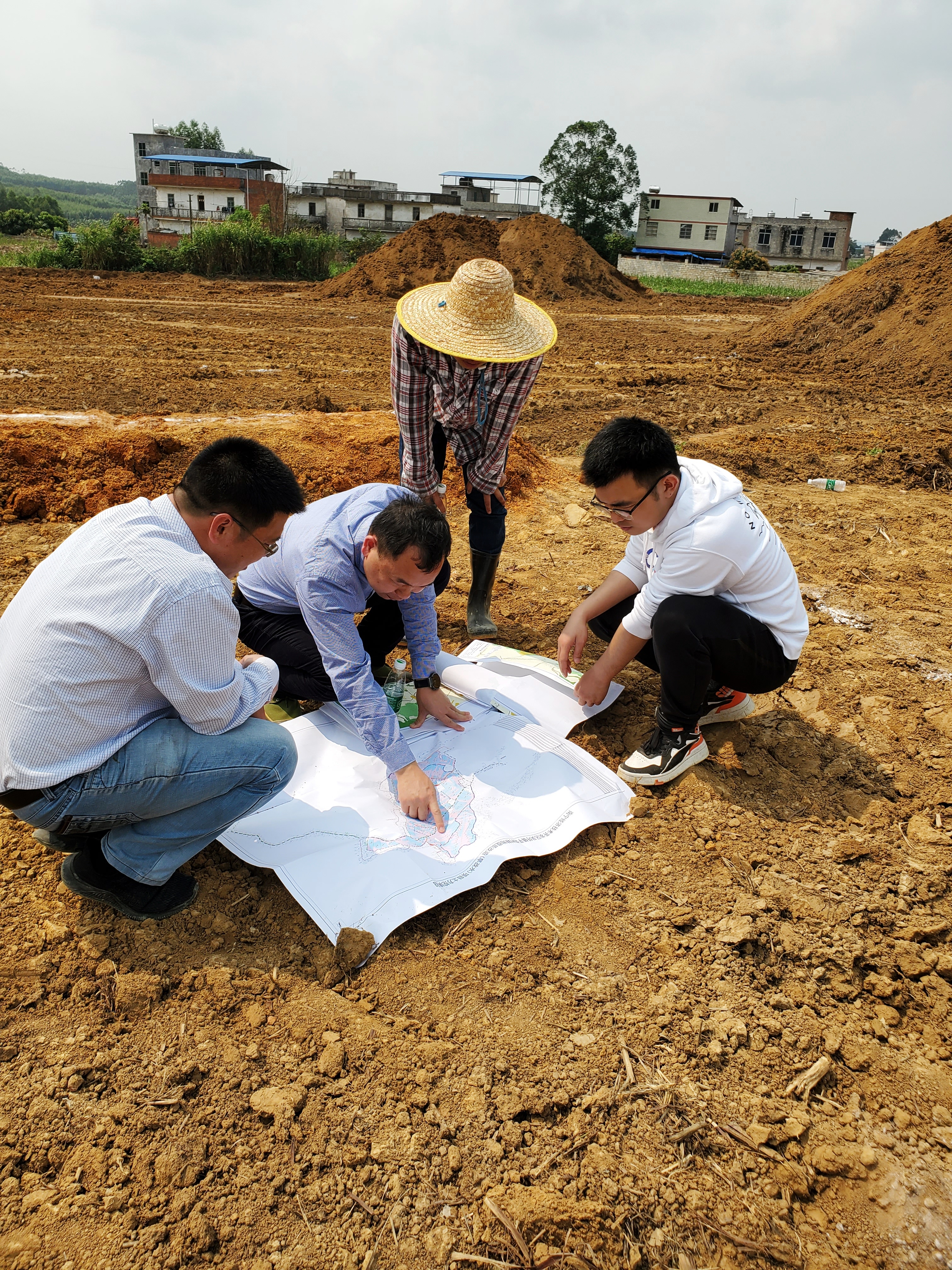 项目勘探初期,科巨公司多渠道开展选址工作,总经理覃远生利用本地人的先天资源优势,积极对接吴圩镇国土资源所,政企结合多次走访吴圩镇各村委大队,积极开展旱改水政策宣传,寻找选址线索。同时以市政二部作为班底,分管副总经理莫际乐为组长,市政二部副经理张海毅、土建工程师李永华为主力,成立旱改水专项工作小组,走村进寨,跋山涉水,深入田间地头开展群众宣讲,足迹遍布吴圩镇的大小村落,山野村林,在自治区国土测绘院指导下,最终择优选定平垌村作为旱改水项目实施地。