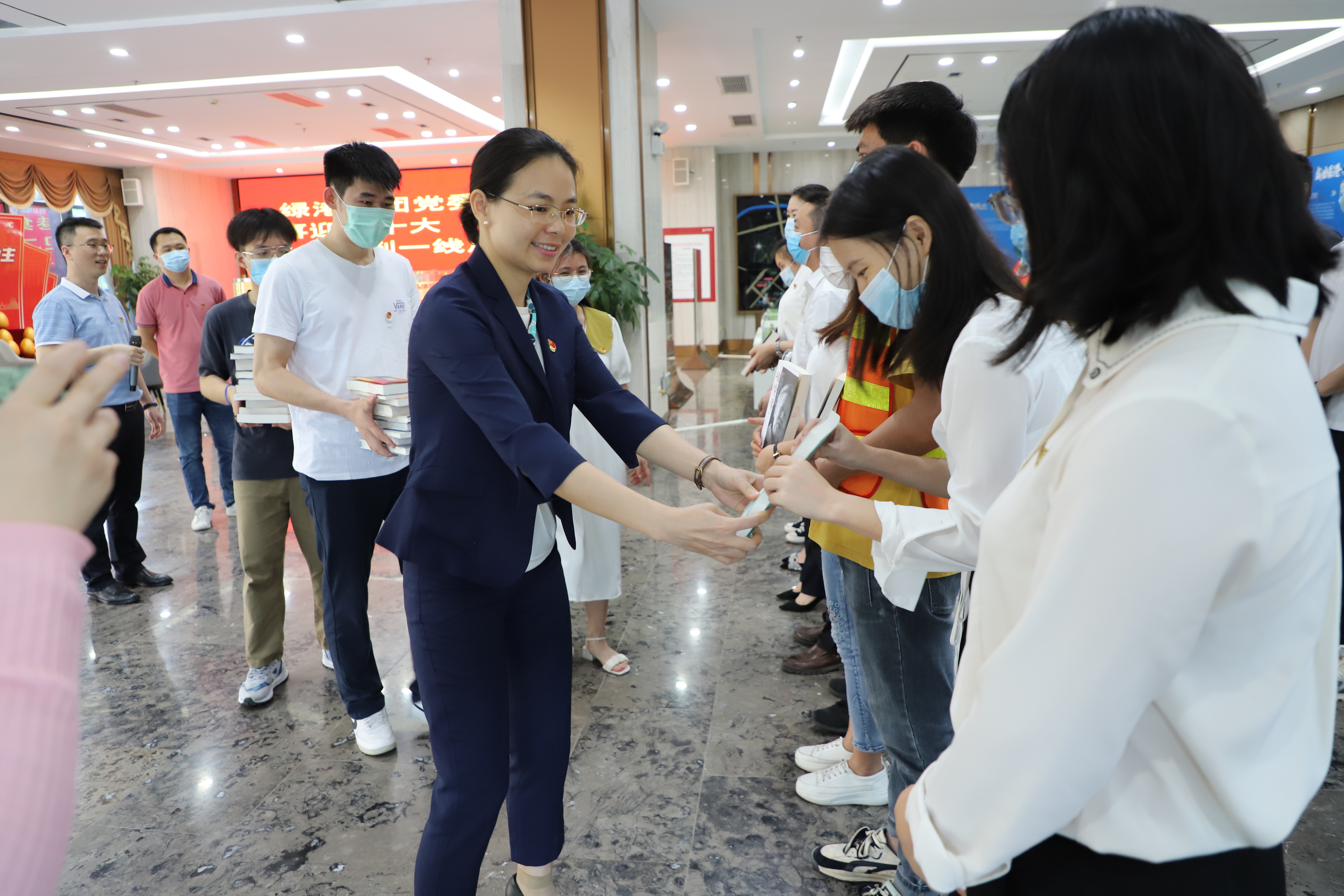 4月25日,在创意产业园一楼大厅,绿港集团党委、团总支开展为青年党员团员赠送书籍的活动,集团党委委员、副总经理、工会主席陆羿冰将一本本“精神食粮”送到团员青年的手中,勉励大家保持青春的热情、担当青春的责任、彰显青春的力量、绽放青春的风采,在奋发有为中谱写新时代青春之歌!陆羿冰副总经理勉励广大青年党员团员:“读书可以修身养性,增长才干,希望大家能够养成阅读的习惯,爱读书、读好书,在书中汲取养分,让青春在阅读中闪光。”在得到图书后,团员青年们兴奋地围在读书角,大家分享起最近的读书心得,相互交流,氛围十分热烈。