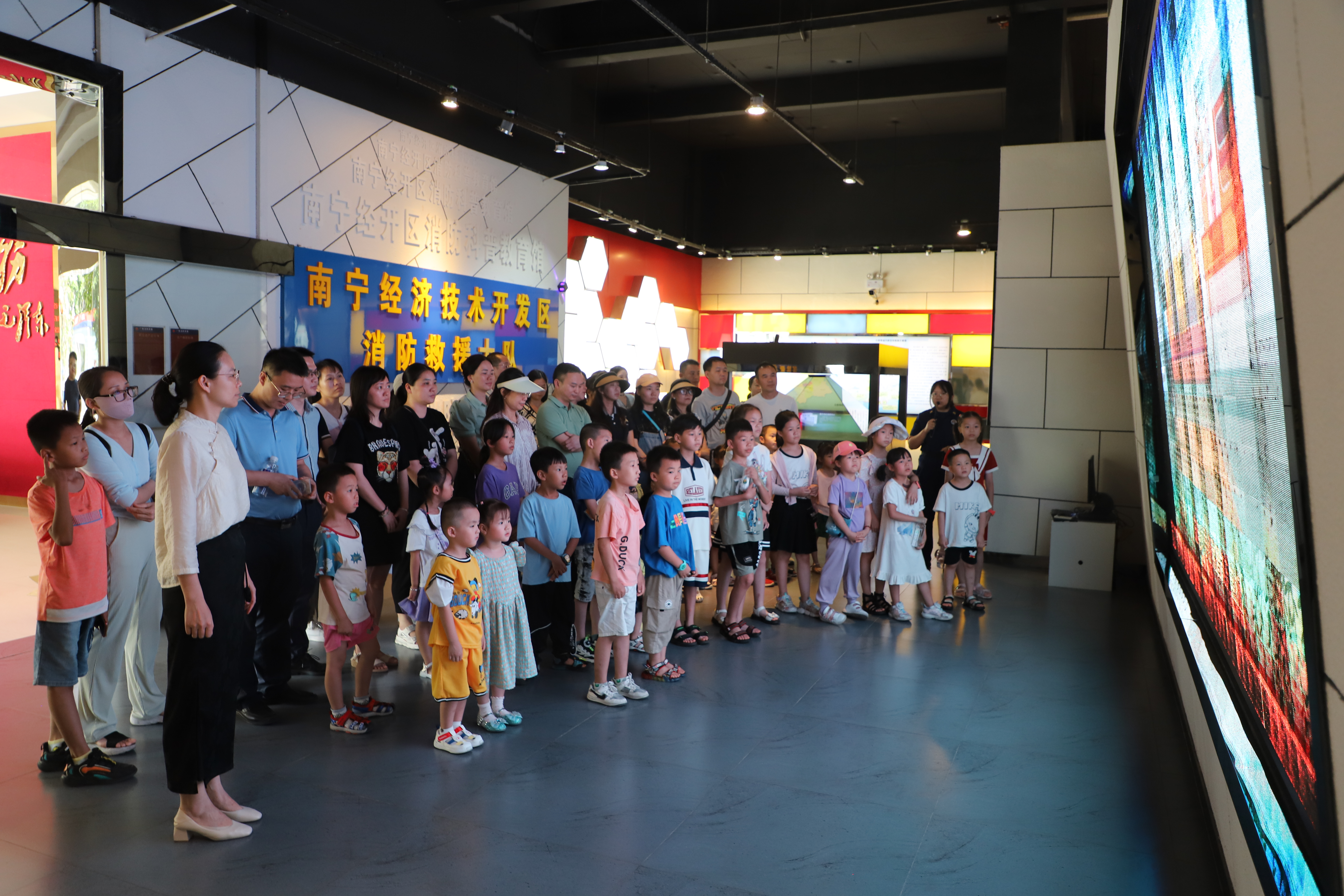 在“六一”儿童节当天,经开区消防大队往日的宁静被小朋友们欢声笑语打破,原来,这里正在举办“快乐六一 消防“童行”活动,这是绿港集团党委与经开区消防大队切实落实习近平总书记关于少年儿童工作的重要论述,进一步关爱少年儿童健康成长的重要举措。消防安全一环扣一环,思想上防患于未“燃”。在消防科普展馆,讲解员引领小朋友们体验了数字沙盘、精确投影等技术带来的灾害救援、消防知识、安全应急的互动感受,在消防员的带领下接触了云梯、灭火器等实物消防设施,提高了孩子们的消防安全意识,强化了大家的自保自救能力。